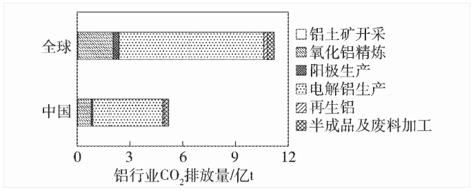 圖1 2018年全球與中國鋁行業(yè)CO2排放量