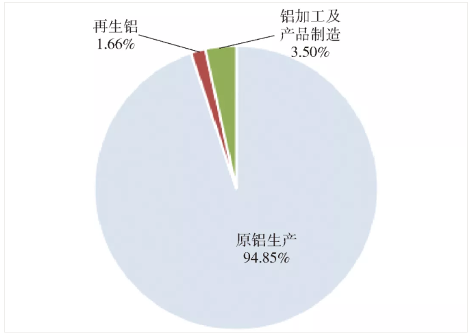 圖2 鋁行業(yè)中各產(chǎn)業(yè)二氧化碳排放占比