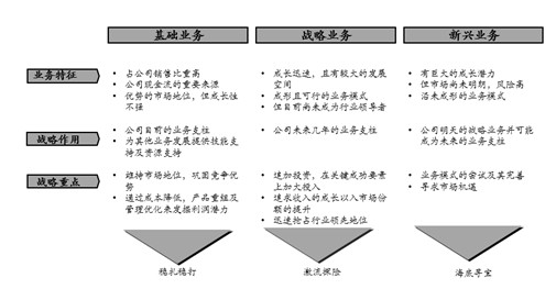 其次,對電量傳感器事業部進行業務方面的戰略分析,分為基礎業務、戰略業務和新興業務。對三個業務進行吸引力-可行性分析,確定業務領域,并做戰略定位。